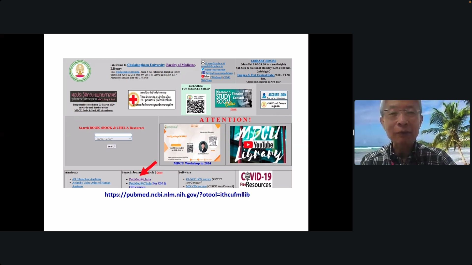 • Prof. Wanla Kulwichit, M.D. (Associate Dean for Education Innovations and IT), who introduced library resources, online databases, and research tools.