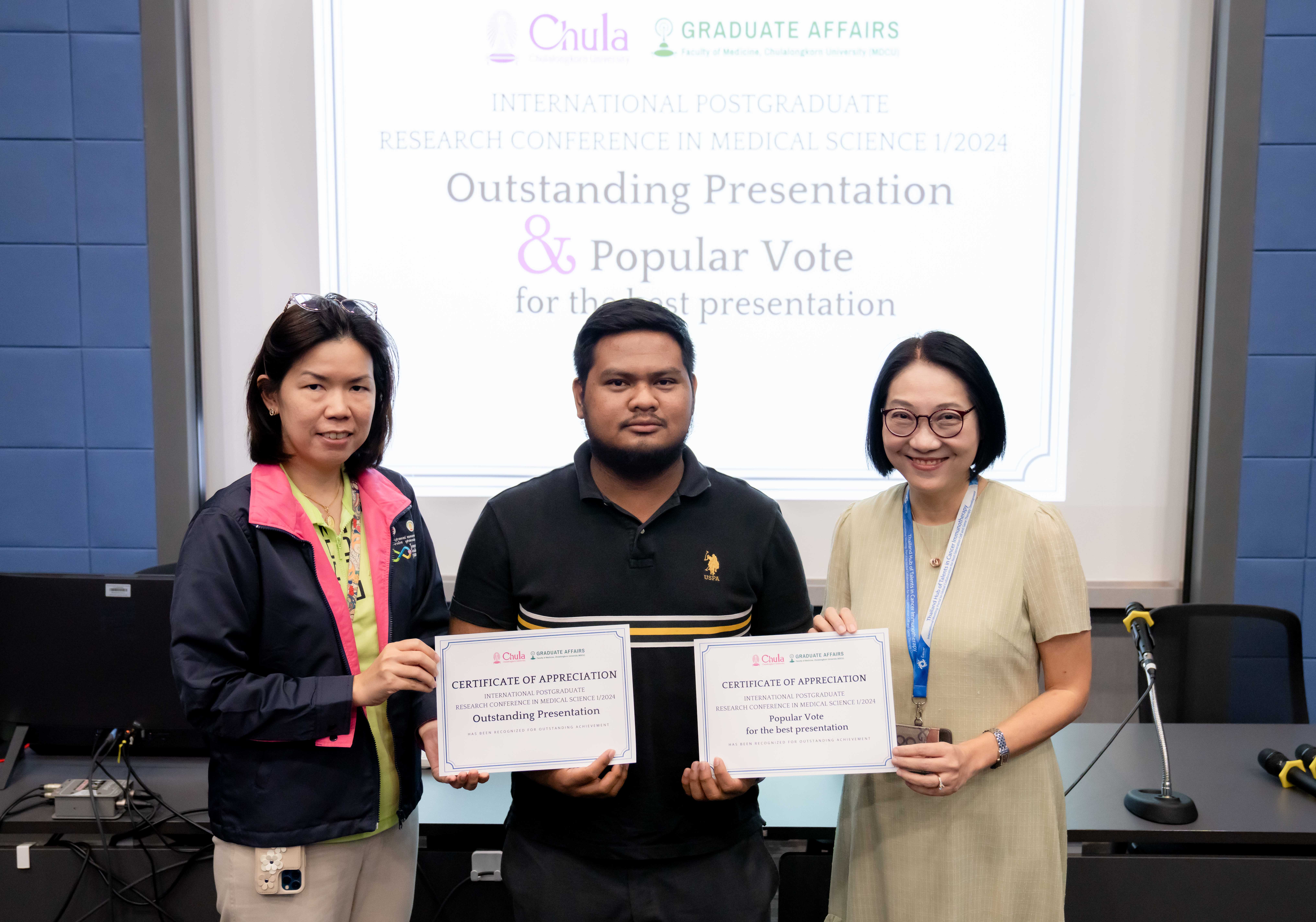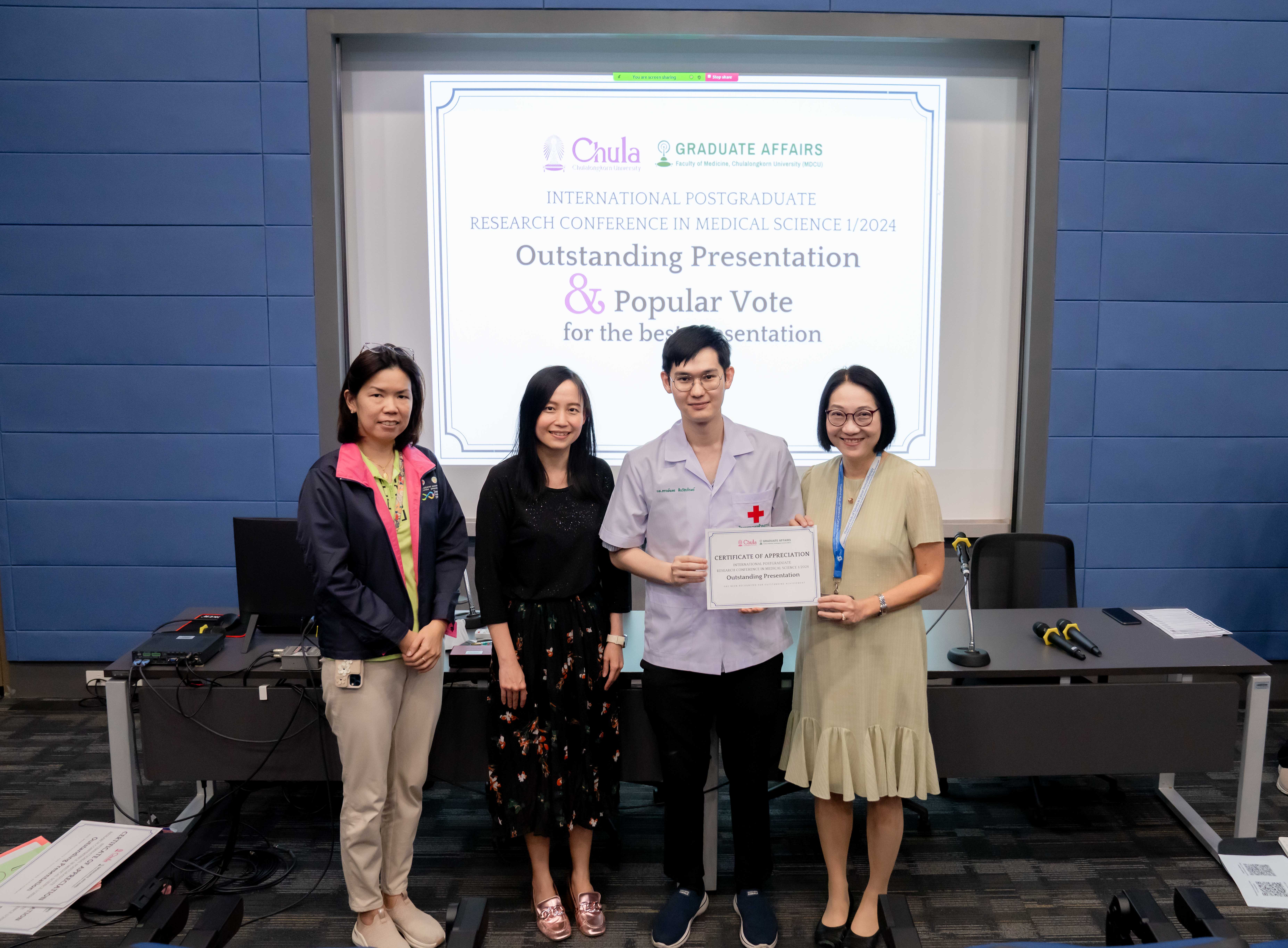 The Medical Sciences Program, in collaboration with the Biomedical and Biotechnology Program, successfully hosted the Postgraduate Research Conference in Medical Sciences 1/2024 at the Kampeeravej Room, School of Global Health, 3rd Floor, Ananda Mahidol Building.