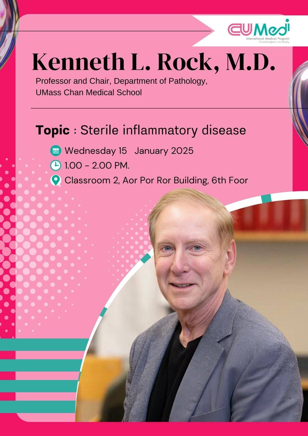 Delivered by Dr. Kenneth L. Rock, Professor and Chair of the Department of Pathology at UMass Chan Medical School, the session ran from 1:00 to 2:00 PM.