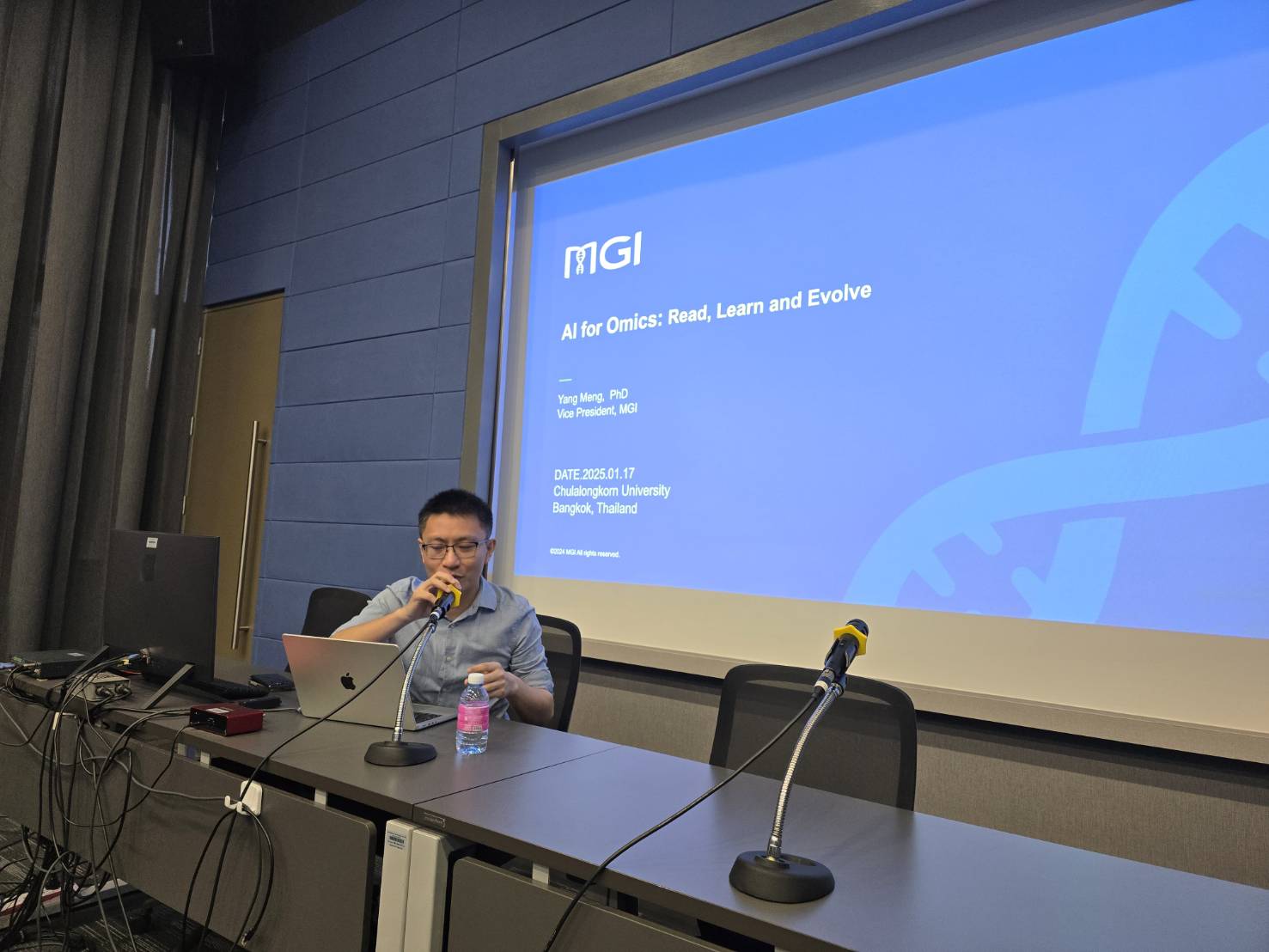 On January 17, 2025, the Medical Sciences Program, in collaboration with BGI, hosted a highly successful seminar titled AI for Omics: Read, Learn, and Evolve at the Kampeeravej Room, School of Global Health, MDCU.