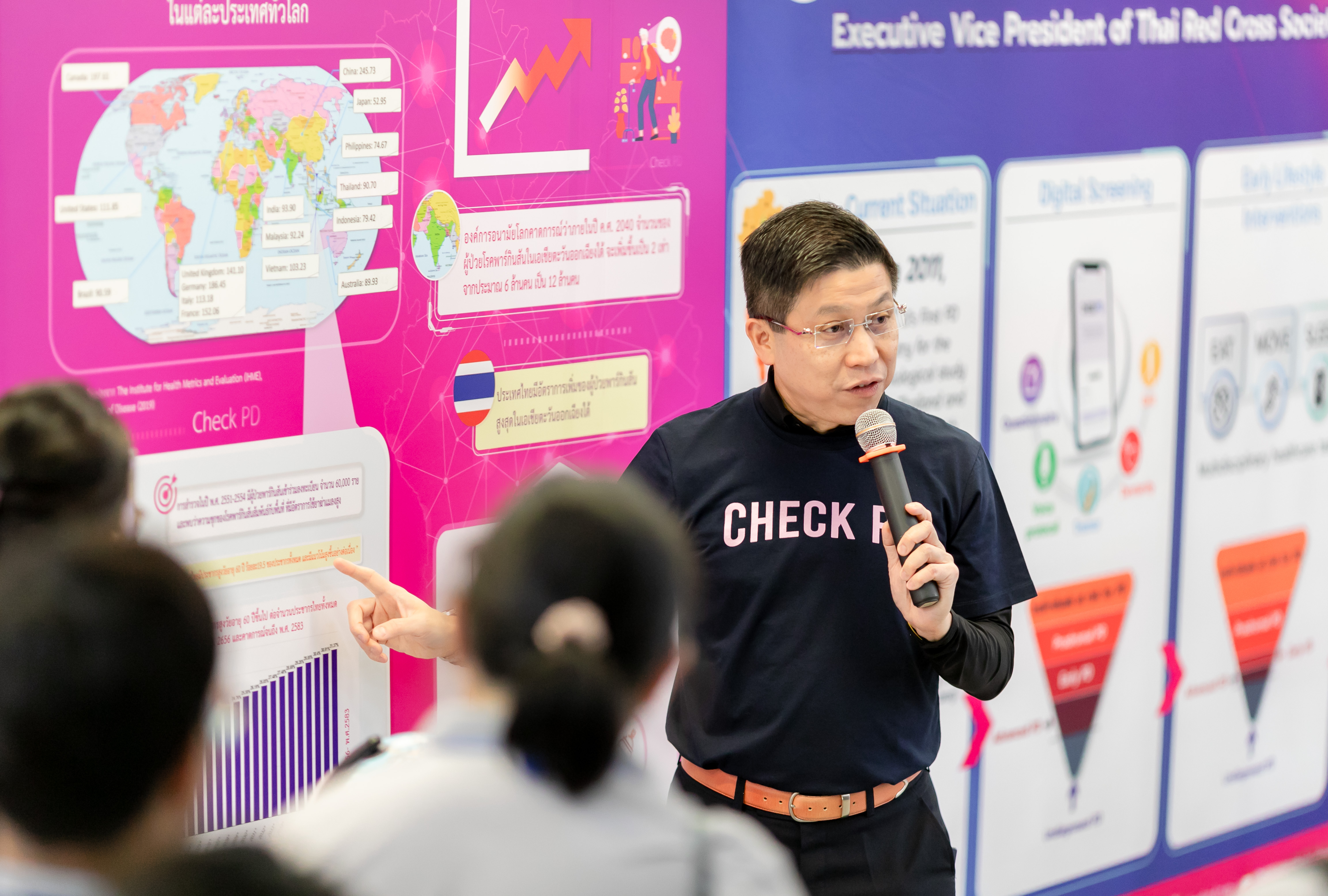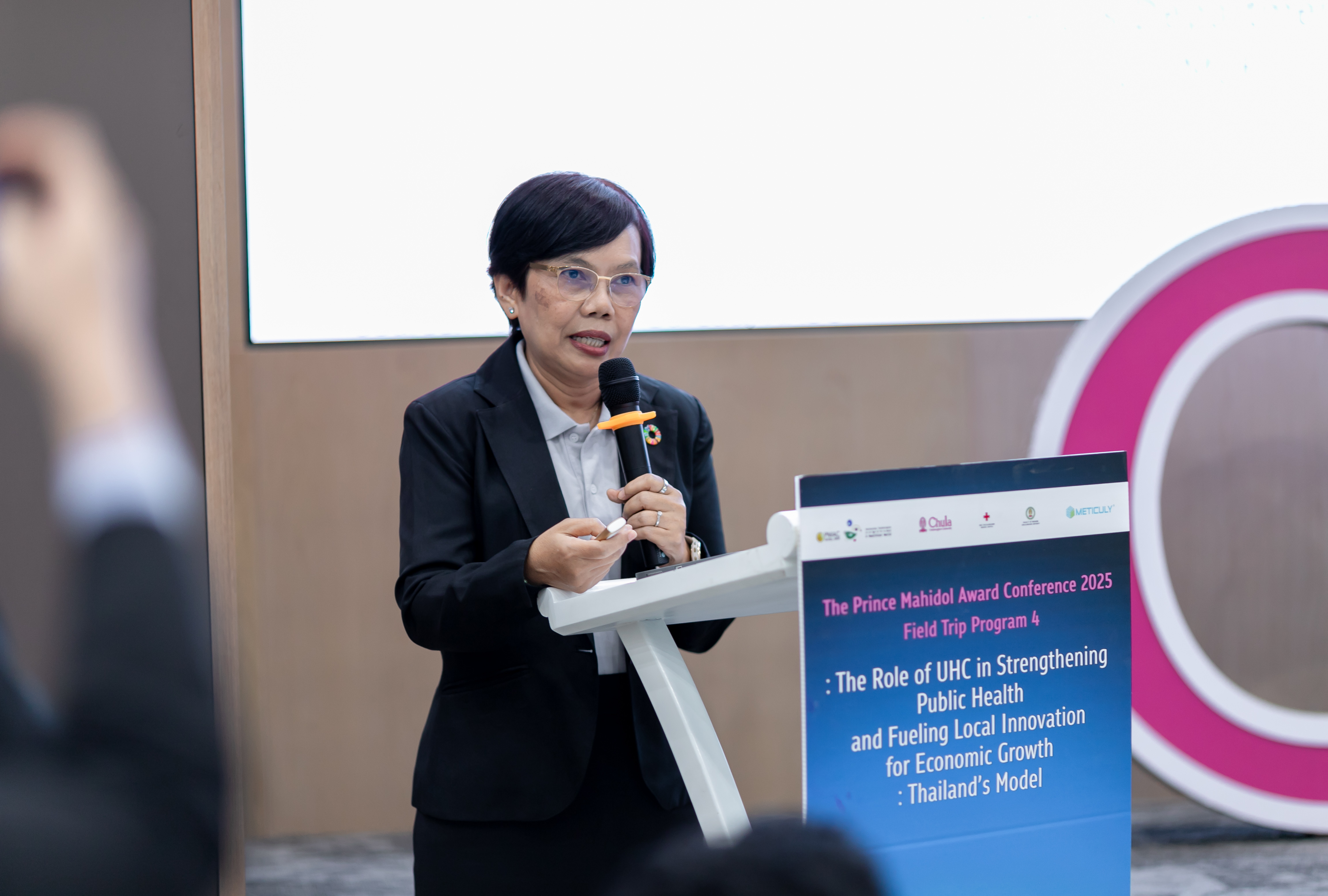 The session provided insights into how Thailand integrates research into policymaking, incorporates medical innovations into the Universal Health Coverage (UHC) scheme, and applies advanced technologies such as artificial intelligence (AI), genomics, and digital health solutions to enhance healthcare accessibility, disease screening, prevention, and treatment.