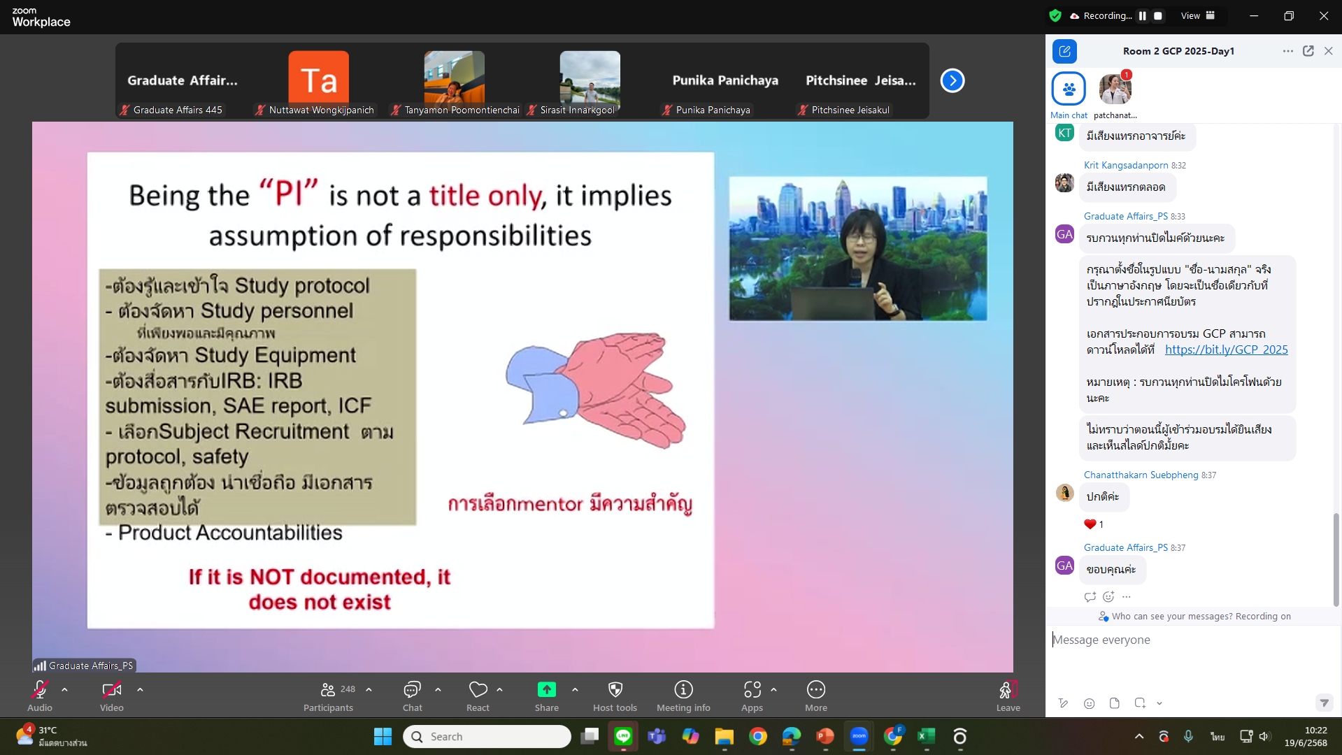 The Graduate Affairs, Faculty of Medicine, together with the Research Ethics Committee have organized the Good Clinical Practice & Human Subject Protection Training for Certificate for residents and fellows along with graduate students via Zoom online meeting on June 19-20, 2025.