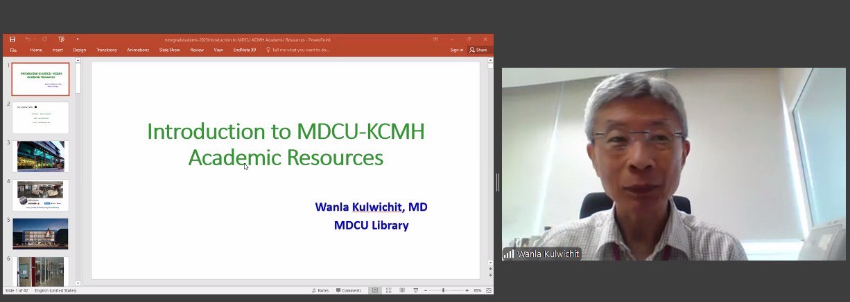 • Prof. Wanla Kulwichit, M.D. (Associate Dean for Education Innovations and IT), who introduced Introduction to the library resources, online databases, and research tools.